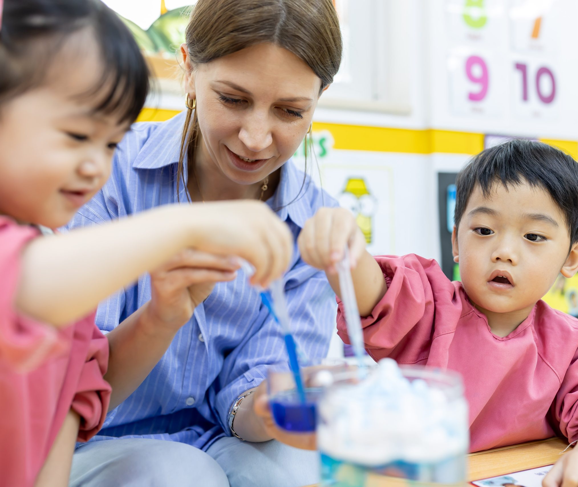 我們的英語教學由來自英語系國家的專業外籍教師,為孩子提供一個英語氛圍的環境。 英文教學-採用「設計活動」(Project Approach)讓學習跳出課本,孩子們會就自己感興趣的主題(如「食物」、「海洋」、「太空」)進行深入探索,在主動研究、發問、協作和解決問題的過程中,自然並有效地掌握英語聽、說、讀、寫的能力。
